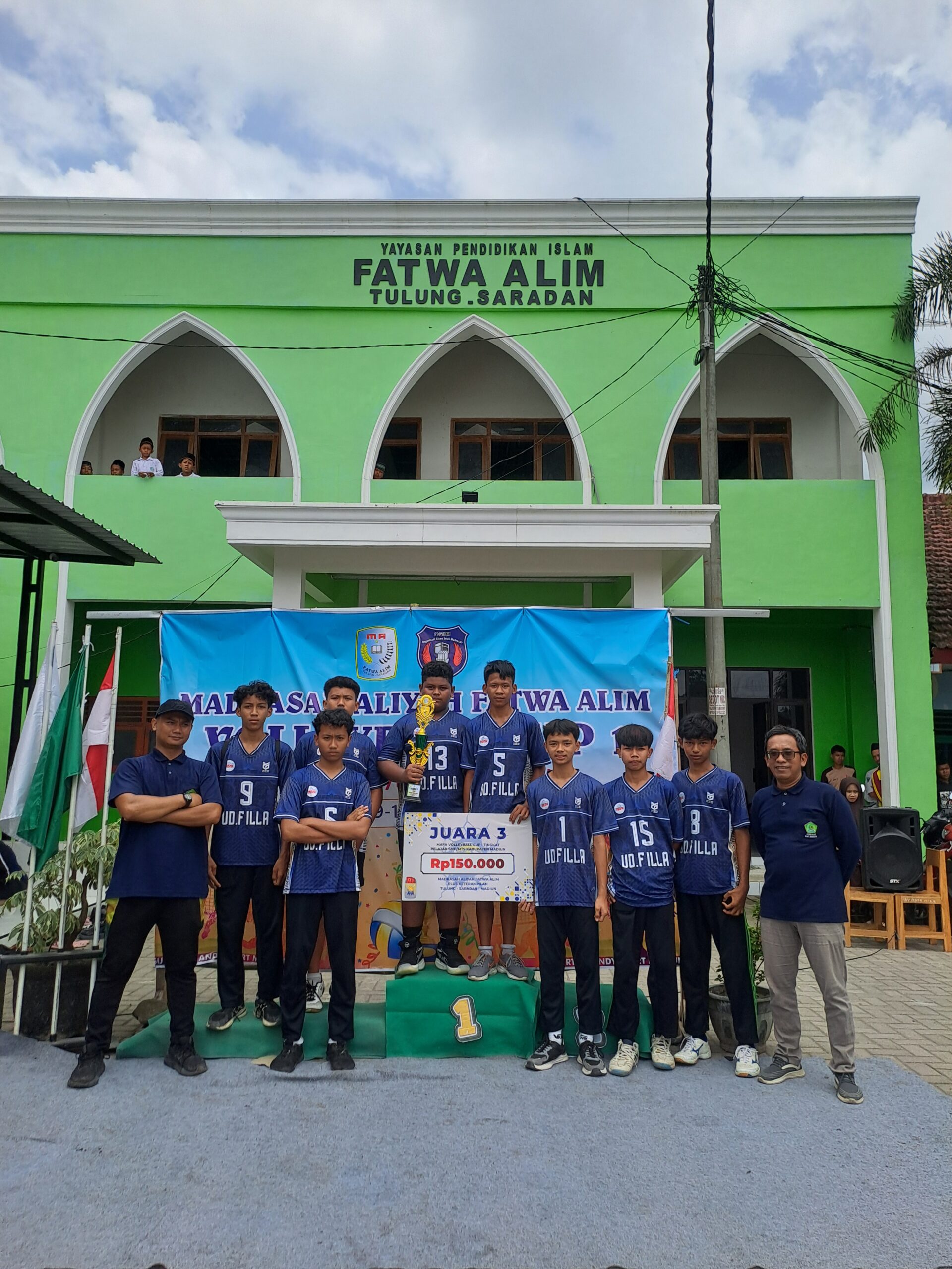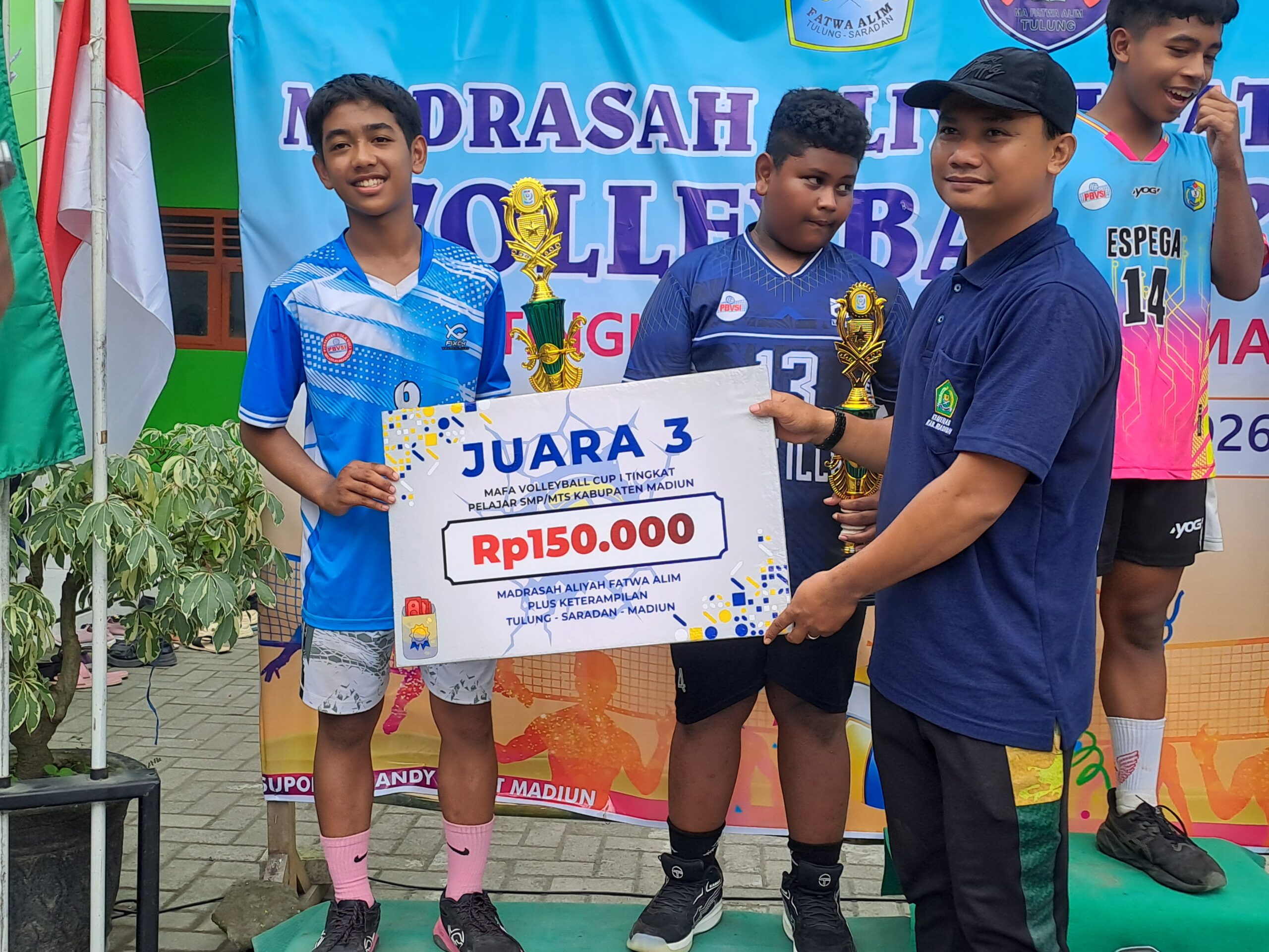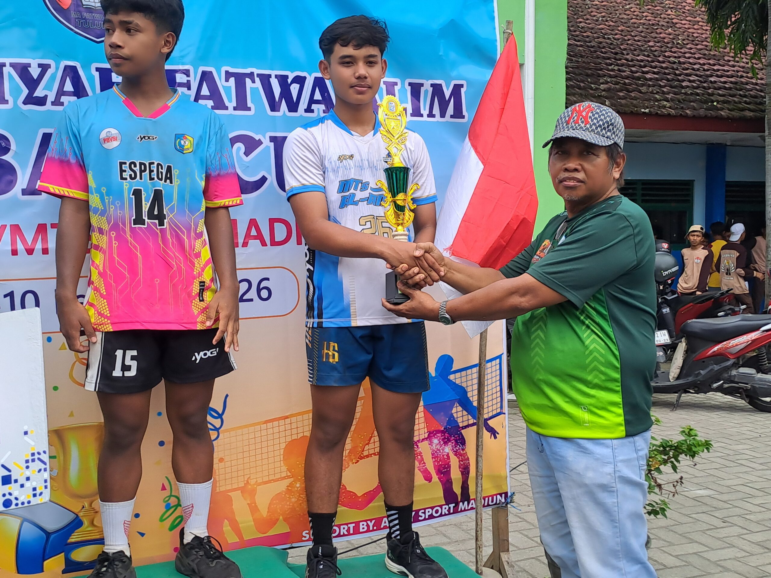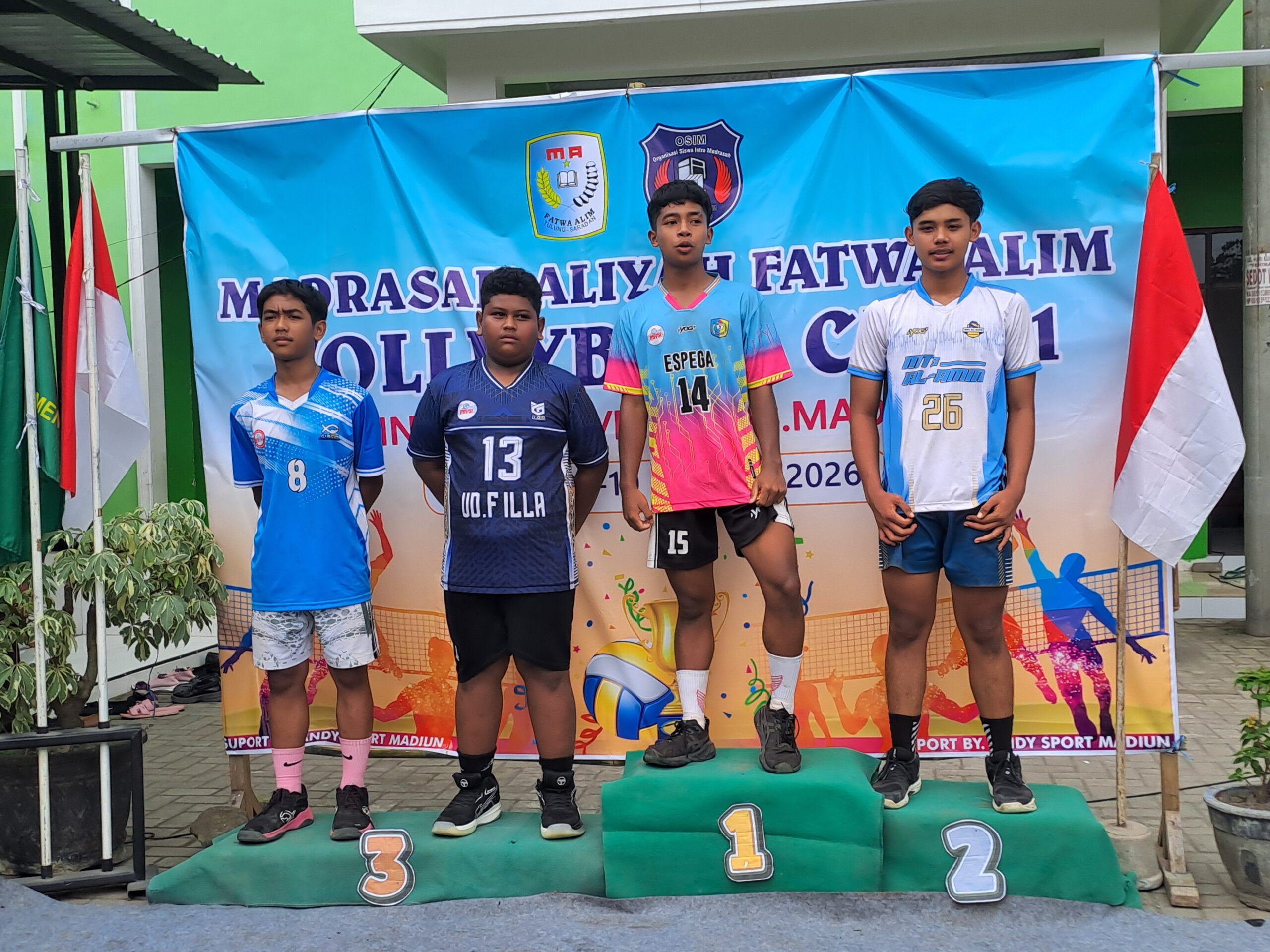 - Juara 2 – MTs Al Amin Sumberbendo: Trofi, sertifikat, piagam, serta uang pembinaan Rp400.000, diserahkan langsung oleh salah satu pengurus PBVSI Kabupaten Madiun kepada perwakilan tim voli putra.