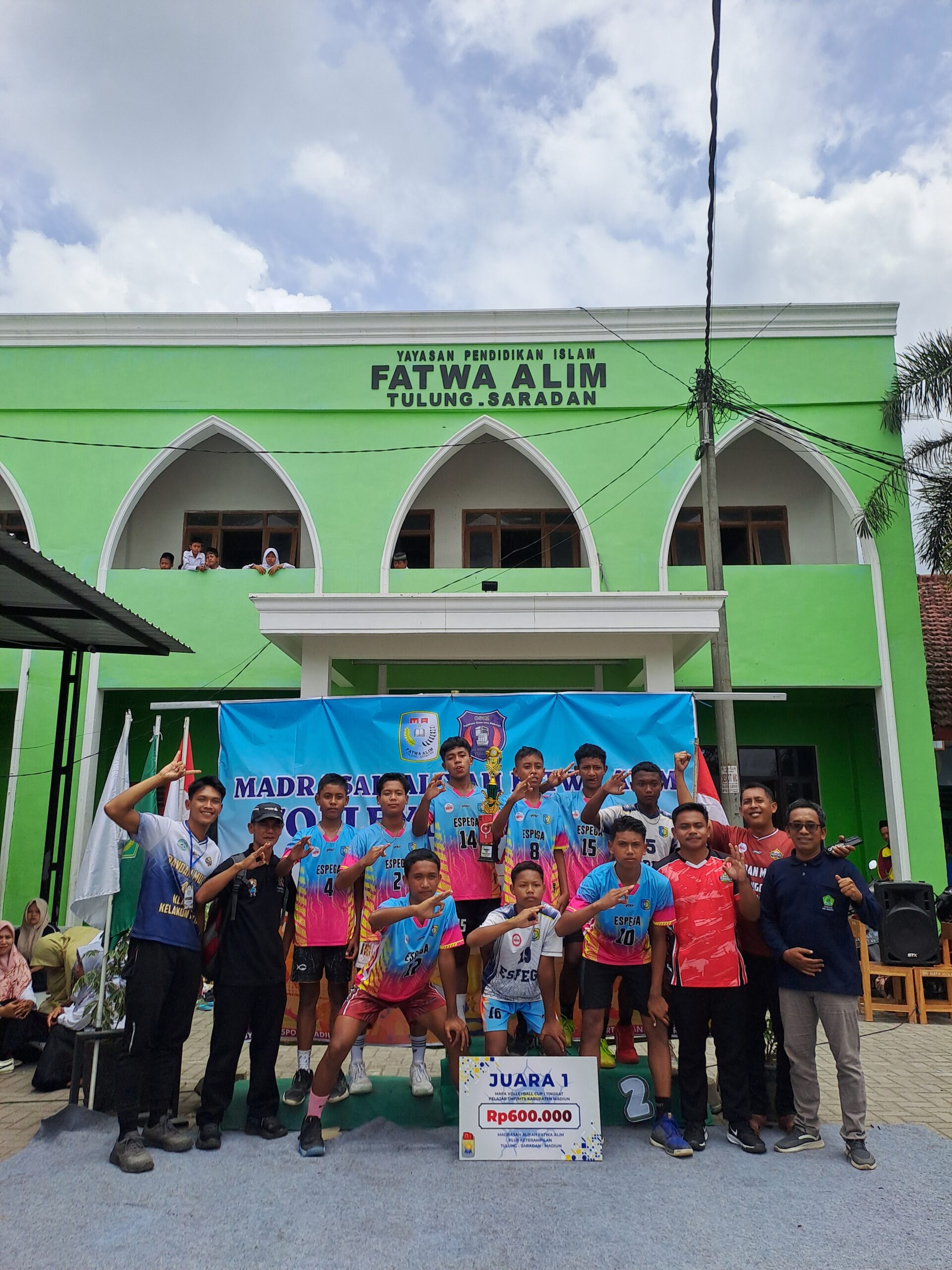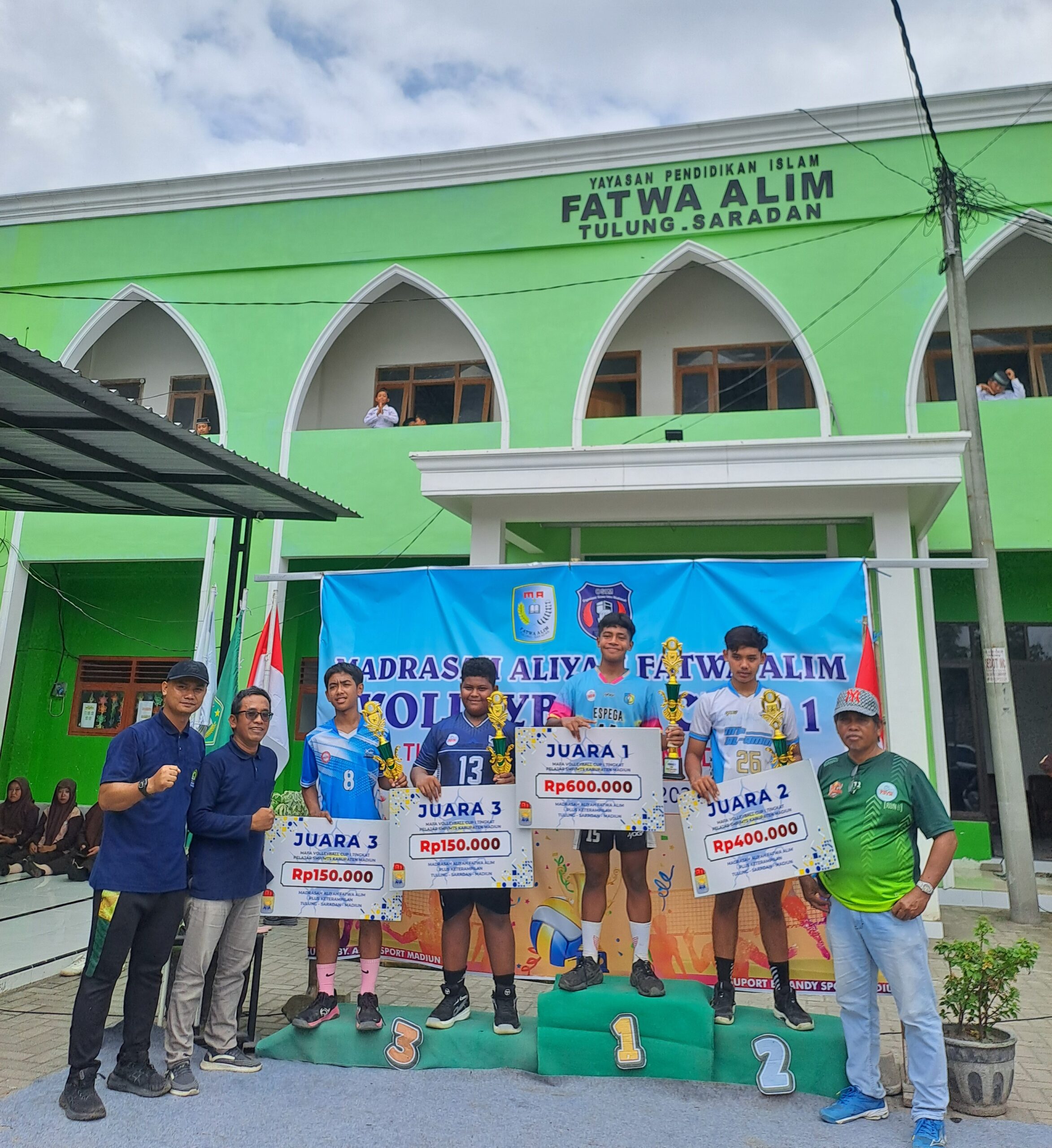 - Juara 1 – SMP Negeri 3 Saradan: Trofi, sertifikat, piagam, serta uang pembinaan Rp600.000, diserahkan langsung oleh Kepala Madrasah kepada perwakilan tim voli putra.